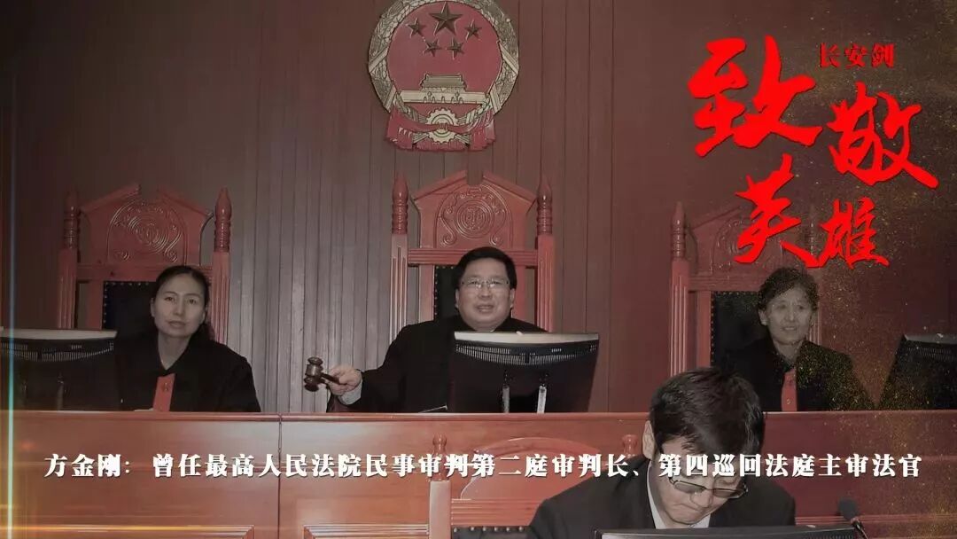 长安剑致敬的法院系统英雄,是已过世的最高人民法院第四巡回法庭法官方金刚。他是“当庭审判”制度的推动者、践行者,敲响了四巡当庭宣判的第一槌。2017年10月17日,51岁的他在合议当天的第十个案件时,倒在了岗位上。