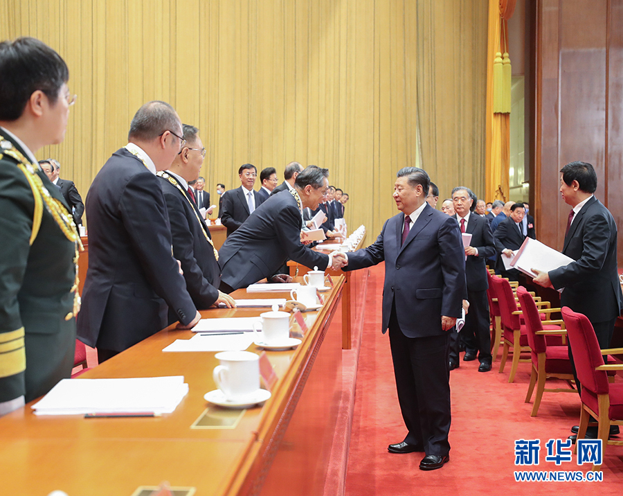9月8日,全国抗击新冠肺炎疫情表彰大会在北京人民大会堂隆重举行。中共中央总书记、国家主席、中央军委主席习近平在大会上发表重要讲话。这是会前,习近平会见国家勋章和国家荣誉称号获得者,全国抗击新冠肺炎疫情先进个人、先进集体代表等,向大家挥手致意。新华社记者黄敬文摄 中共中央政治局委员、中央书记处书记,全国人大常委会副委员长,国务委员,最高人民法院院长,最高人民检察院检察长,全国政协副主席,以及中央军委委员出席大会。 各省区市、中央党政军群各部门负责同志,各民主党派中央、全国工商联负责人和无党派人士代表,国家勋章和国家荣誉称号获得者亲属代表、所在单位代表,抗击新冠肺炎疫情牺牲烈士亲属代表,港澳同胞、台湾同胞、海外侨胞及归侨、侨眷代表,各国驻华使节、国际组织驻华代表及对我国抗击新冠肺炎疫情作出贡献的国际友人代表等约3000人参加大会。
