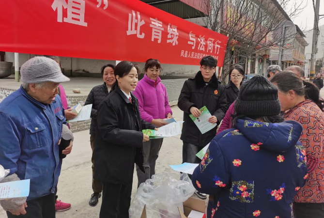 | 春风和煦,法润人心。3月12日,正值我国第47个植树节,为深入贯彻落实习近平生态文明思想,践行“守护秦岭宁静和谐美丽,黄河安澜,一泓清水永续北上”理念,凤县人民法院环境资源保护法庭前往黄牛铺镇开展以“‘植’此青绿,与法同行”为主题的普法活动。