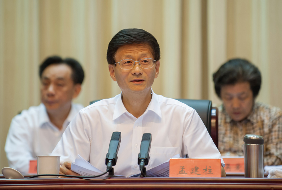 全国社会治安防控体系建设工作会议9月23日在辽宁大连召开,中共中央政治局委员、中央政法委书记、中央综治委主任孟建柱出席会议并讲话。王建军摄
