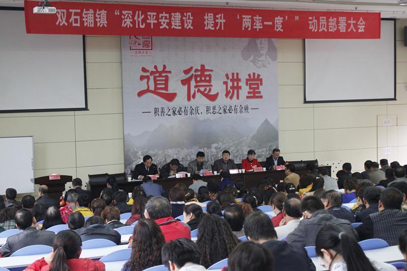 10月16日上午,双石铺镇召开了“深化平安建设、提升‘两率一度’”动员大会,根据属地管理原则对驻镇各机关企事业单位、镇辖各村、社区、企业的平安建设工作进行了全面动员和部署。