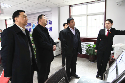 2月8日,陕西省司法厅法制研究处处长华文胜一行在宝鸡市司法局局长苏红旗的陪同下前来凤县矛盾纠纷化解中心调研,凤县县委常委、政法委书记韩晓陪同调研。 华文胜处长一行参观了化解中心,韩晓书记介绍了236多元化纠纷解决机制试点情况及工作流程、人员配置和相关配套制度,重点介绍了中心探索分类交办、集中化解、督办、司法确认、登记立案的相关情况,华处长重点了解了化解中心的运转情况及取得的成效。