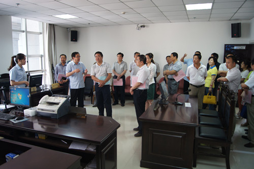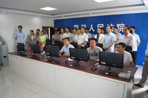 代表、委员们先参观了法院的诉讼服务中心,了解了诉讼服务中心的功能、人员配置、硬件设施、案件立案、分案、办理流程、新施行的立案登记制和近年来凤县各类案件办理情况。在该中心,凤县法院院长江伟向大家演示了审判信息查询机的使用。随后,代表、委员们还依次参观了远程视频接访中心、科技法庭、机房、数字化审委会会议室、图书室、执行指挥中心和信访举报中心。 在参观执行指挥中心,听取江伟院长详细介绍了执行指挥中心具有的执行指挥、金融查控、视频监控、远程视频、庭审直播、公共广播等功能后,与会人员普遍对凤县法院在信息化推动司法公开方面的工作表示惊讶,纷纷称赞系统软硬件一流,工作效率高,表示对破解“执行难”问题有充分信心。
