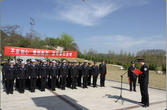 活动中,双石铺派出所副所长杨岩松带领全体人员在烈士纪念碑前重温了入警誓词。 局党委副书记、政委李乖省同志在致辞中指出:要牢记先烈遗志,不忘从警初心。革命先烈们抛头颅、洒热血,就是为了让人民群众过上好日子,作为一名人民警察,我们要始终牢记自己的职责和使命,始终将人民满意作为工作的标准,坚决做到“对党忠诚、服务人民、执法公正、纪律严明”,任何时候都不要忘记了自己在警徽下的铮铮誓言;要坚持公安姓党,全心为民的宗旨不能变。公安队伍是党绝对领导下的以党员为主体的纪律部队,这一特殊属性,决定了公安机关必须紧紧抓住政治建警这个核心,坚持党的绝对领导这一根本原则,确保绝对忠诚、绝对纯洁、绝对可靠。面对新的形势任务,全体民警一定要增强政治责任感,把维护以习近平同志为核心的党中央权威和集中统一领导作为首要政治任务,把对党忠诚、为党分忧、为党尽职、为民造福作为根本政治担当,把党中央关于公安工作的各项部署落到实处,始终确保坚定正确的政治方向,坚持以人民为中心的工作方向不能变;要传承英烈精神,做好当前各项公安工作。各单位要组织民警认真开展学习活动,永远缅怀革命烈士,学习他们的英雄事迹和革命精神,并以他们为榜样,坚定共产主义理想信念,深化党性锤炼,忠诚履职、无私奉献,全力以赴做好当前各项公安工作,为建设高品质幸福凤县做出应有的贡献。 活动结束后,参加的活动人员对烈士陵墓进行了祭扫。 通过此次祭扫活动,大家一致表示要立足本职,深入践行习近平总书记的“对党忠诚、服务人民、执法公正、纪律严明”总要求,忠于职守,勇于担当,确保2018年各项公安工作取得优异成绩,展示个人风采!