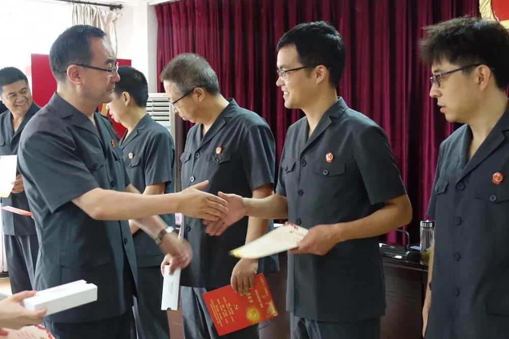 6月29日,县法院党组积极号召党员出资购买包扶的贫困村因疫情滞销的土特产,促进贫困户产业脱贫。全院党员干警共出资5350元购买了包扶的沙坝村土蜂蜜、木耳、花椒等一大批农副土特产。在“七一”前夕,通过消费扶贫促进贫困村产业发展,增加贫困户收入,起到了抓党建促脱贫、为基层解困、为群众解难的目的。 表彰先进 忆初心强党性