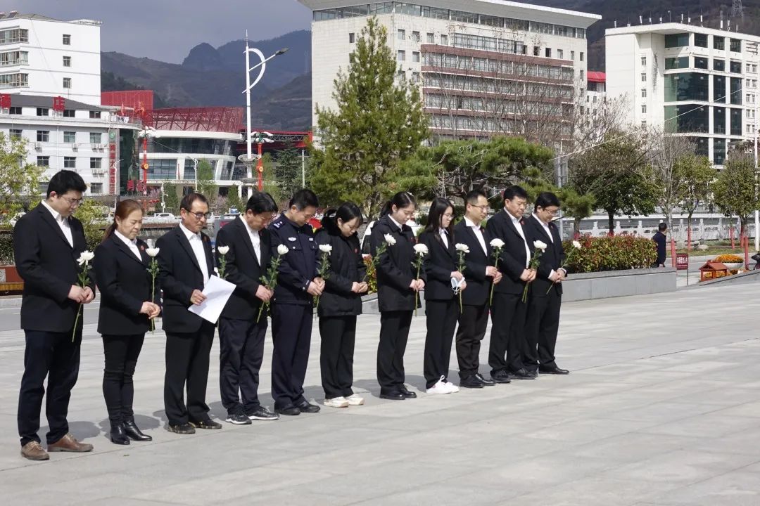 青山不语,丰碑永存。为弘扬英烈精神、传承红色基因,4月4日,在清明节到来之际,凤县法院干警一行15人在院党组成员、副院长赵旭的带领下,前往甘肃省两当县两当兵变纪念馆,开展清明祭英烈活动,共同缅怀革命先烈。