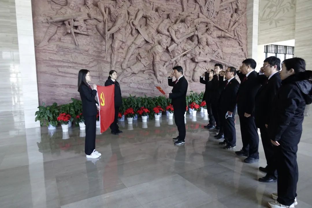 在庄严肃穆的两当兵变纪念碑前,全体干警身着黑色制服,整齐列队,庄严肃立,向革命英烈鞠躬默哀,敬献鲜花,表达对革命先烈的崇高敬意和无限哀思。立案庭法官助理潘晨代表青年干警在纪念牌前发言,党员、发展对象、入党积极分子,面对鲜红的党旗,重温入党誓词,矢志继承先辈遗志,珍惜当下,履职尽责,奋勇前行。