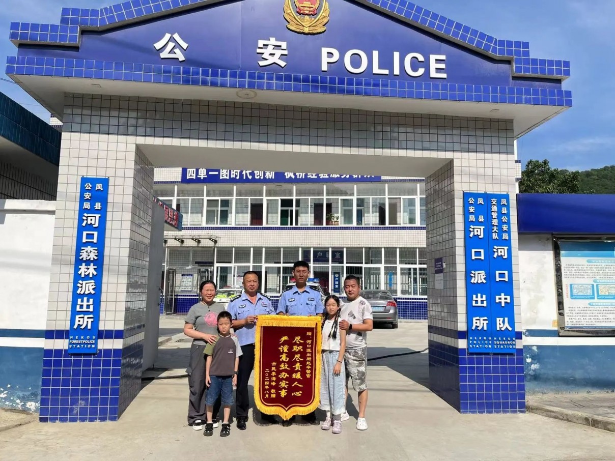 2024年8月1日中午13点21分,河口派出所接到指挥中心指派,报警人李海峰称其在凤县服务区北区上卫生间时,不慎将自己的华为手机遗忘在卫生间内,其手机内存有大量资金和重要文件数据。民警赵辛迅速赶赴现场,通过查看服务区监控视频,最终锁定一名白衣男子有重大作案嫌疑,民警随即对该男子驾驶的车辆及轨迹进行研判,确定该男子已驾车至甘肃省陇南市,通过长达5个多小时的追踪,成功为失主李海峰将丢失手机找回。2024年8月2日,失主李海峰携家属特制作锦旗,赠与河口派出所赵辛警官,表达感谢!